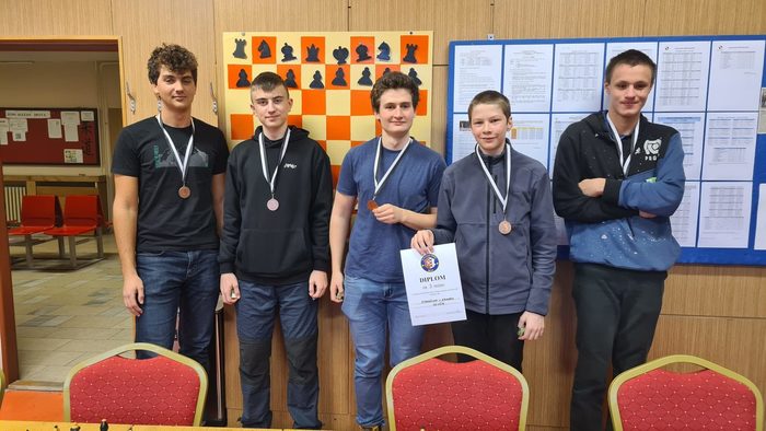 Ve čtvrtek 12. 12. 2024 se v Opavě uskutečnilo Okresní finále přeboru středních škol v šachu. Za naši školu jsme byli vysláni jako pětičlenný tým studentů a to ve složení Ondřej Bitta (kvarta), Matěj Dostál (sexta), Lukáš Dubělčík (sexta), Oliver Kusyn (sekunda) a Ondřej Pazour (1. A). Po příchodu na nás čekaly připravené šachovnice a poprvé jsme také stanuli tváří v tvář našim soupeřům.