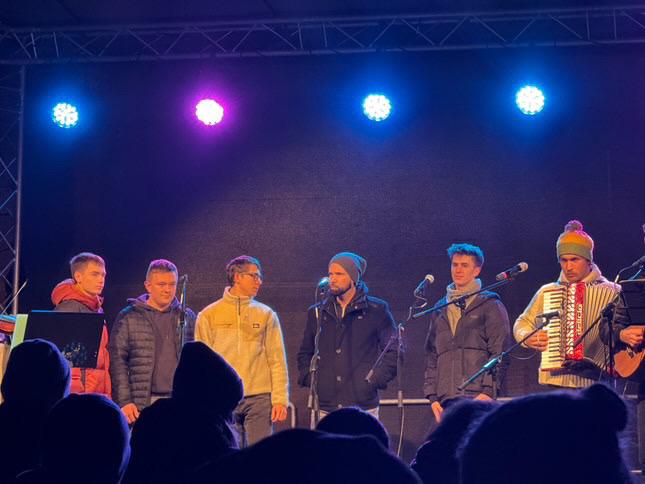 Začátek adventu a s ním rozsvícení vánočního stromu v sobotu 30. listopadu v Ludgeřovicích se již třetím rokem neobešlo bez našeho hudebního uskupení Šohaj. I když jsme se nesešli v plném počtu, myslím si, že náš repertoár potěšil nejednoho posluchače. Jsem rád, že do Šohaje stále chodí zazpívat bývalí studenti našeho gymnázia.