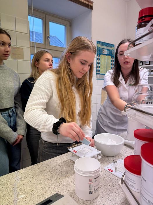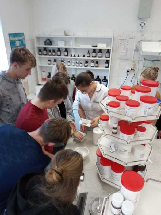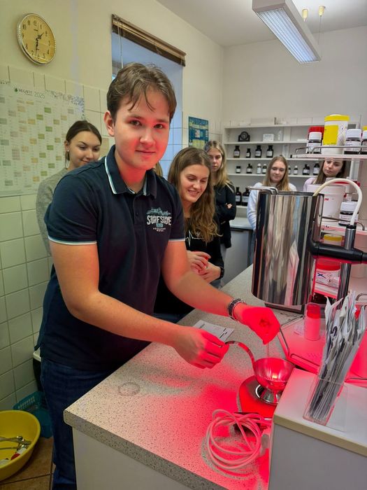 Během návštěvy si studenti pod vedením zkušených farmaceutů vyzkoušeli přípravu léků a mastí. Praktická část exkurze jim umožnila lépe porozumět chemickým procesům, které stojí za výrobou léků, a zároveň ocenit důležitost pečlivosti a přesnosti v této profesi.
